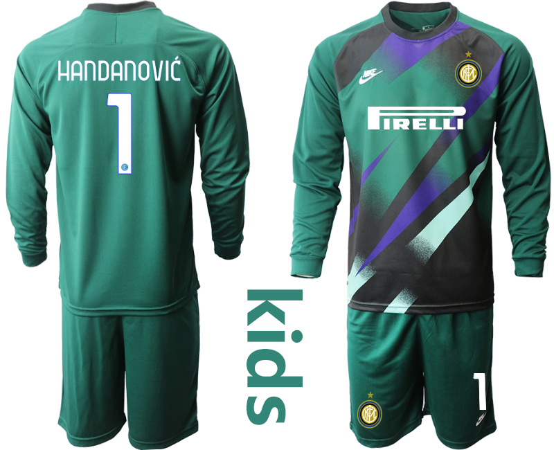 Youth 2020-2021 club Inter Milan green long sleeved Goalkeeper #1 Soccer Jerseys