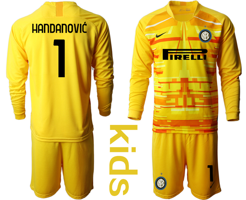 Youth 2020-2021 club Inter Milan yellow long sleeved Goalkeeper #1 Soccer Jerseys