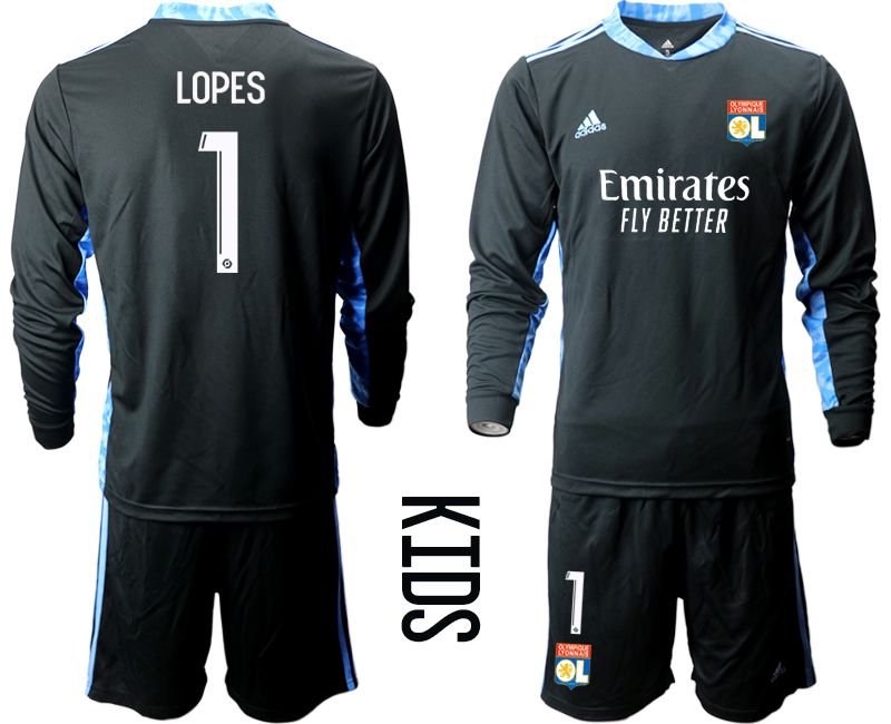 Youth 2020-2021 club Olympique Lyonnais black long sleeve goalkeeper #1 Soccer Jerseys