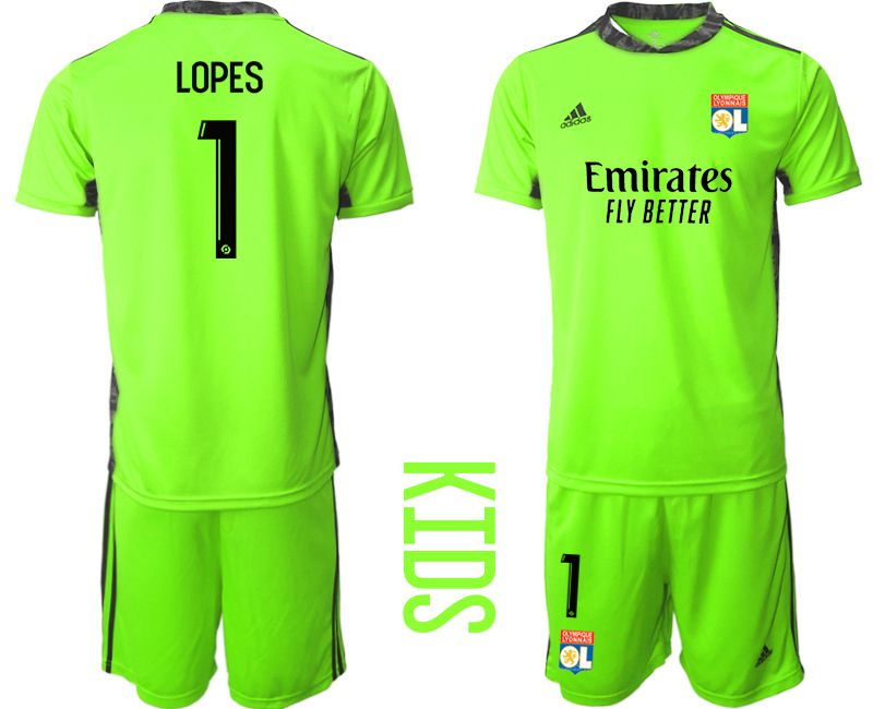 Youth 2020-2021 club Olympique Lyonnais fluorescent green goalkeeper #1 Soccer Jerseys