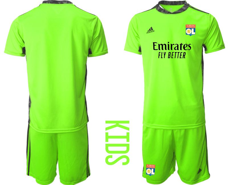 Youth 2020-2021 club Olympique Lyonnais fluorescent green goalkeeper Soccer Jerseys