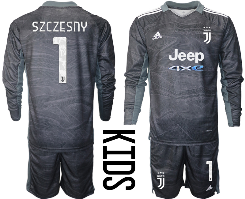 Youth 2021-2022 Club Juventus black Goalkeeper Long Sleeve #1 Adidas Soccer Jersey