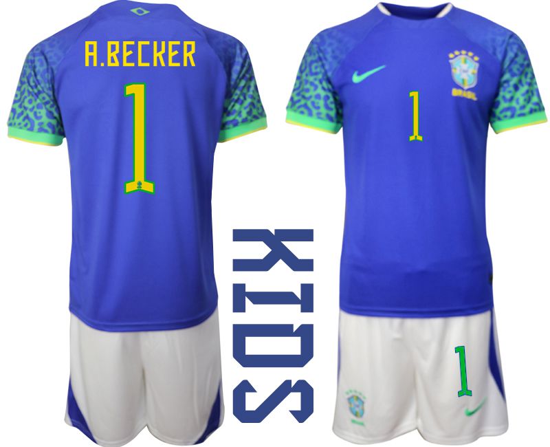 Youth 2022 World Cup National Team Brazil away blue #1 Soccer Jersey