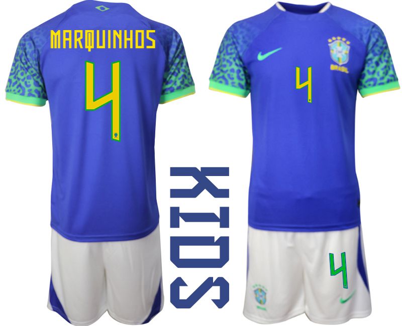 Youth 2022 World Cup National Team Brazil away blue #4 Soccer Jersey
