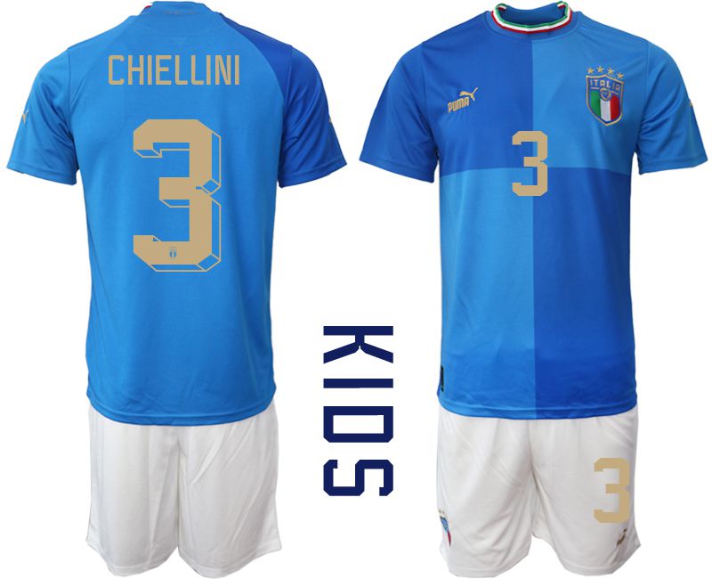 Youth 2022 World Cup National Team Italy home blue #3 Soccer Jerseys