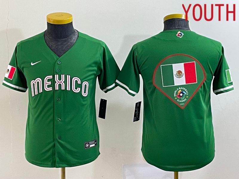 Youth 2023 World Cub Mexico Blank Green Nike MLB Jersey1