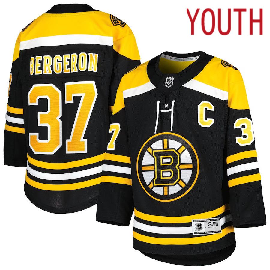 Youth Boston Bruins #37 Patrice Bergeron Black Home Premier Player NHL Jersey