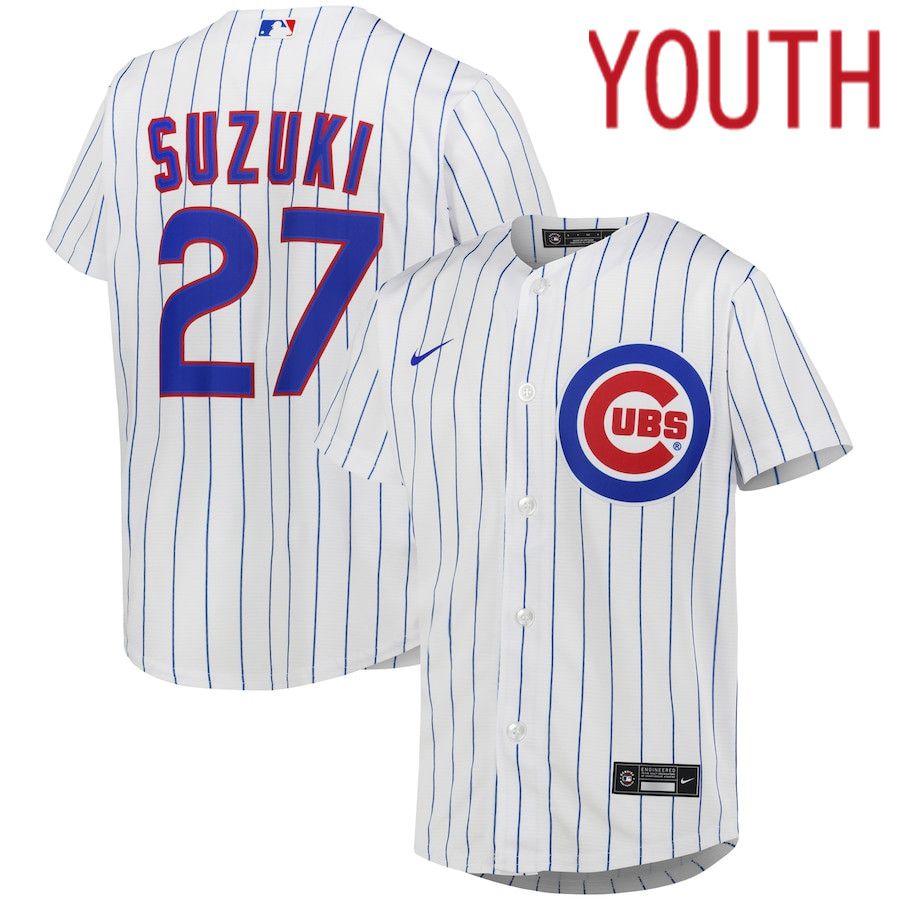 Youth Chicago Cubs #27 Seiya Suzuki Nike White Home Replica Player MLB Jersey