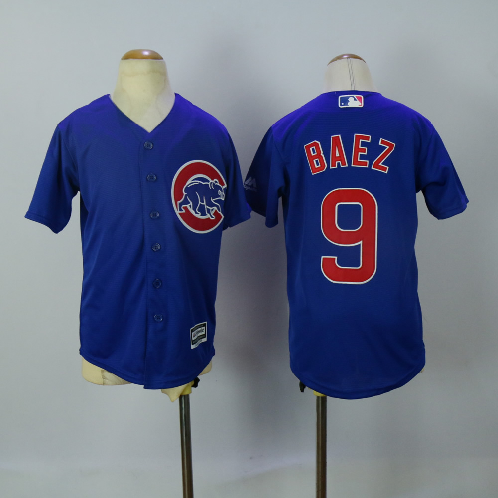 Youth Chicago Cubs #9 Baez Blue MLB Jerseys