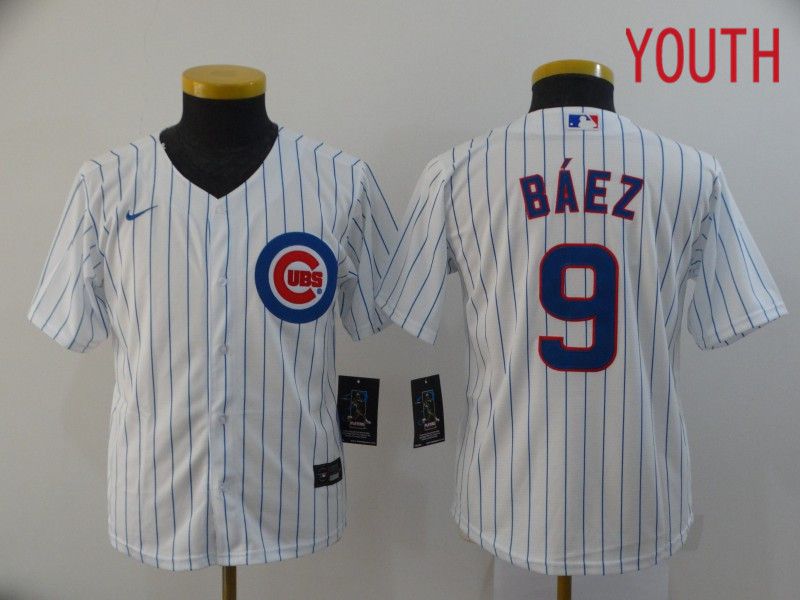 Youth Chicago Cubs #9 Baez White Game Nike MLB Jerseys