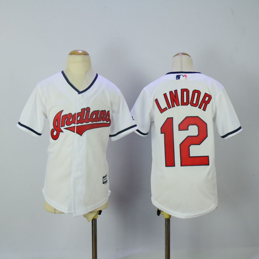 Youth Cleveland Indians #12 Lindor White MLB Jerseys