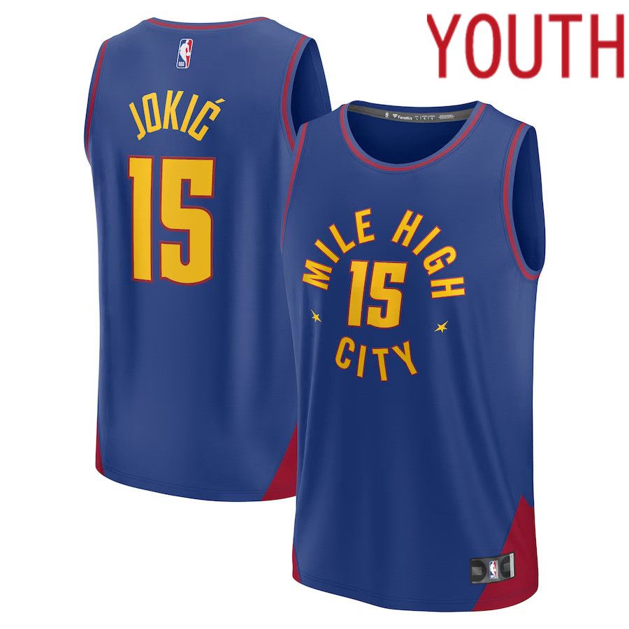 Youth Denver Nuggets #15 Nikola Jokic Fanatics Branded Blue Fast Break Player NBA Jersey