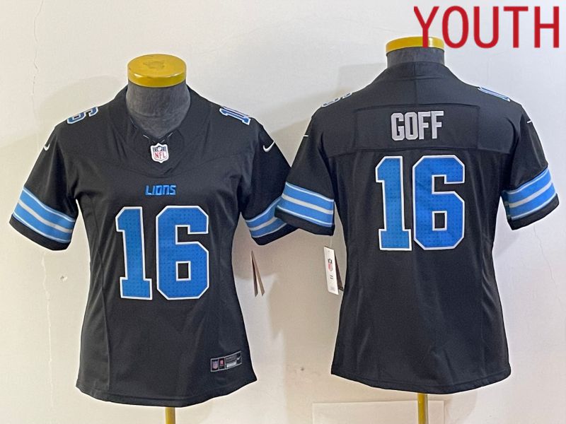 Youth Detroit Lions #16 Goff Black Three generations 2024 Nike Vapor F.U.S.E. Limited NFL Jersey