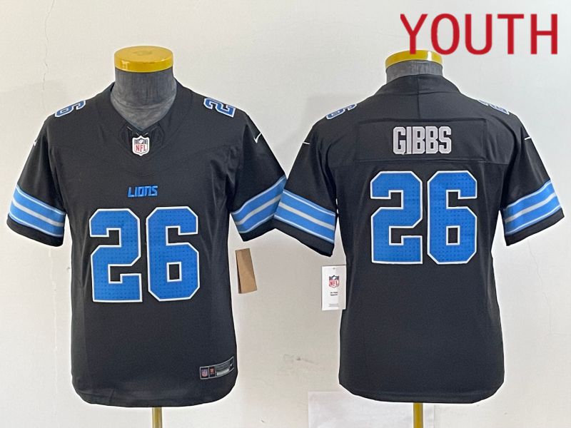 Youth Detroit Lions #26 Gibbs Black Three generations 2024 Nike Vapor F.U.S.E. Limited NFL Jersey