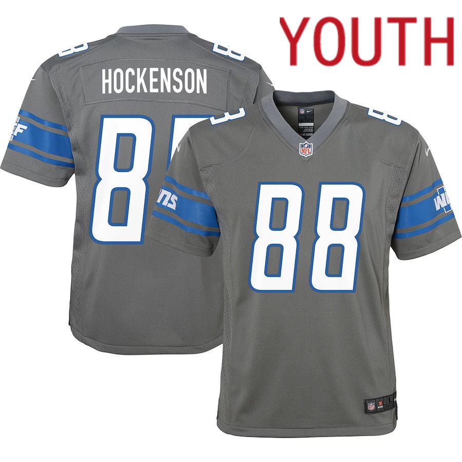 Youth Detroit Lions #88 T.J. Hockenson Nike Silver Team Game NFL Jersey