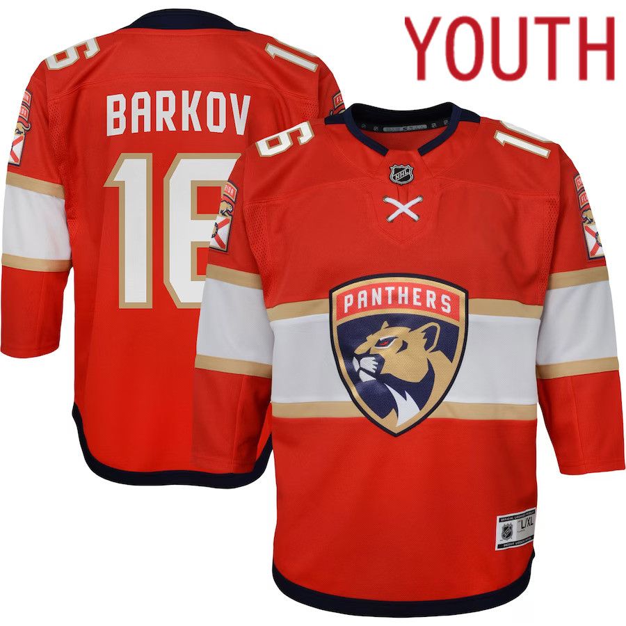 Youth Florida Panthers #16 Aleksander Barkov Red Home Captain Replica Player NHL Jersey