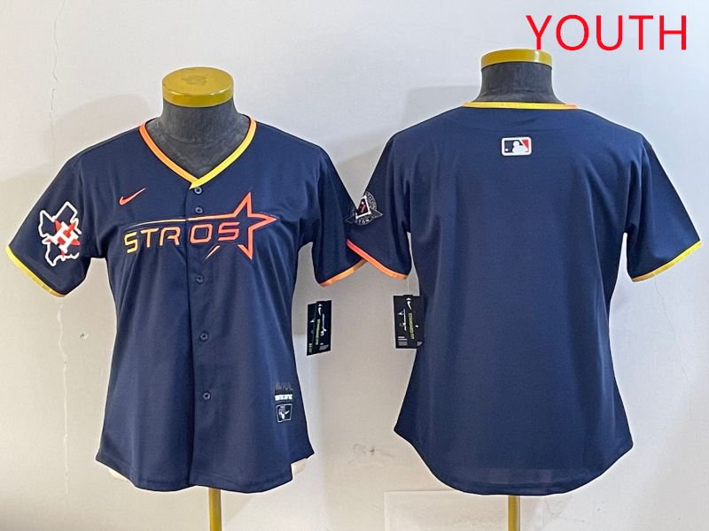 Youth Houston Astros Blank Drak Blue Three generations Joint Name 2025 Nike MLB Jersey style 2