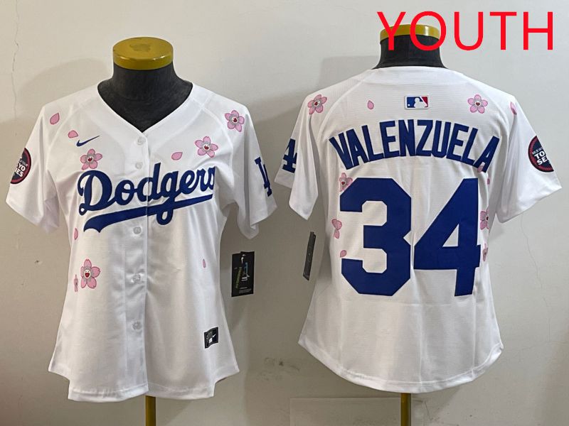 Youth Los Angeles Dodgers #34 Valenzuela White Sakura Edition 2025 Nike MLB Jersey style 1
