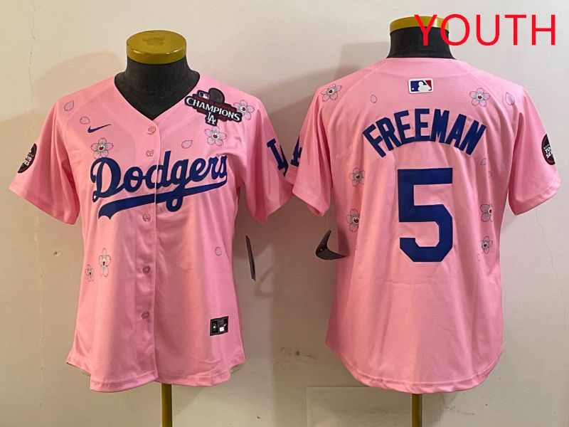Youth Los Angeles Dodgers #5 Freeman Pink Sakura Edition 2025 Nike MLB Jersey style 4