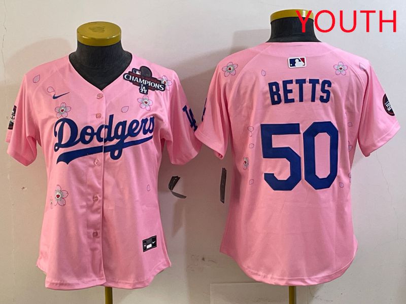 Youth Los Angeles Dodgers #50 Betts Pink Sakura Edition 2025 Nike MLB Jersey style 6