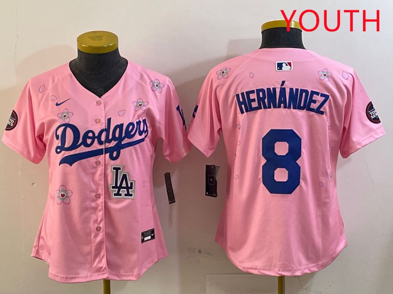 Youth Los Angeles Dodgers #8 Hernandez Pink Sakura Edition 2025 Nike MLB Jersey style 9