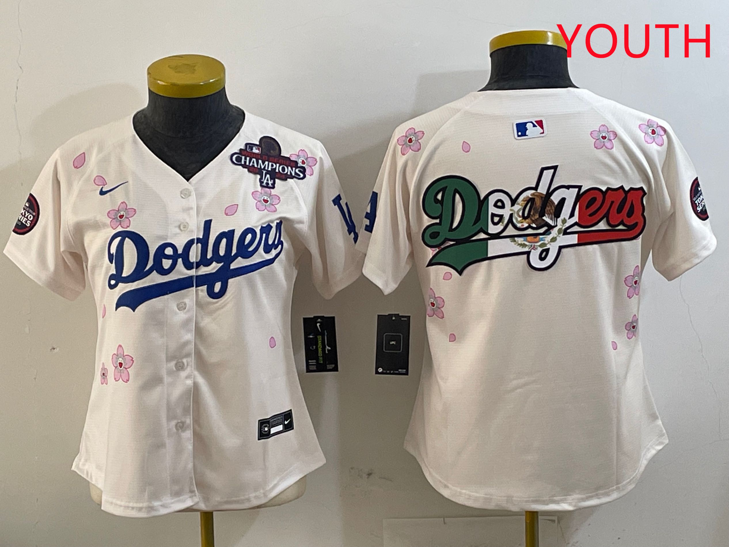 Youth Los Angeles Dodgers Blank Cream Sakura Edition 2025 Nike MLB Jersey style 8