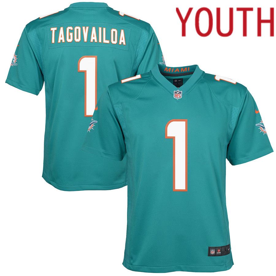 Youth Miami Dolphins #1 Tua Tagovailoa Nike Aqua Game NFL Jersey