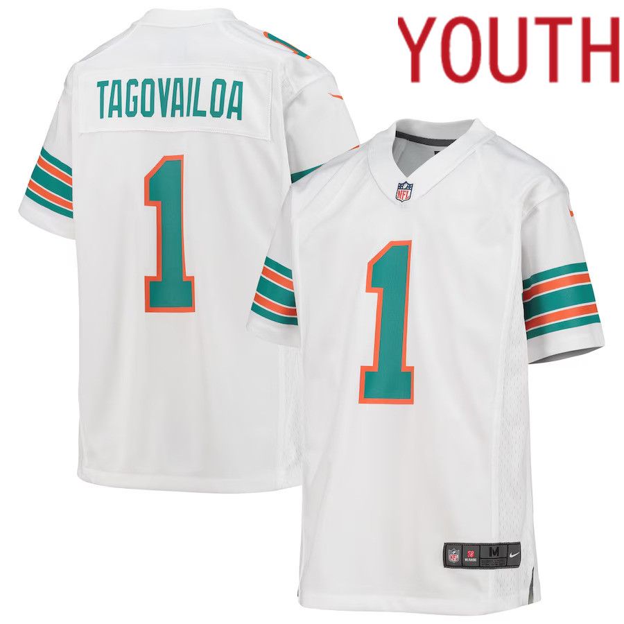 Youth Miami Dolphins #1 Tua Tagovailoa Nike White Alternate Game NFL Jersey