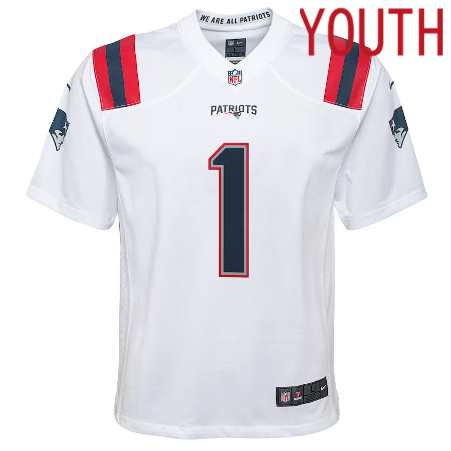 Youth New England Patriots #1 Cam Newton Nike White Game NFL Jersey
