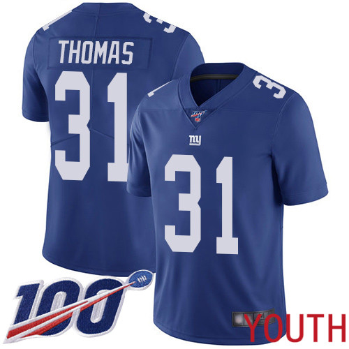 Youth New York Giants #31 Michael Thomas Royal Blue Team Color Vapor Untouchable Limited Player 100th Season Football NFL Jersey
