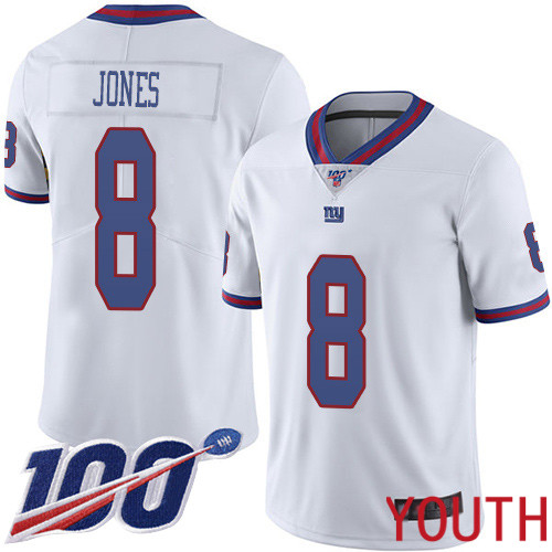Youth New York Giants #8 Daniel Jones Limited White Rush Vapor Untouchable 100th Season Football NFL Jersey