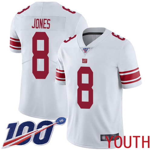 Youth New York Giants #8 Daniel Jones White Vapor Untouchable Limited Player 100th Season Football NFL Jersey