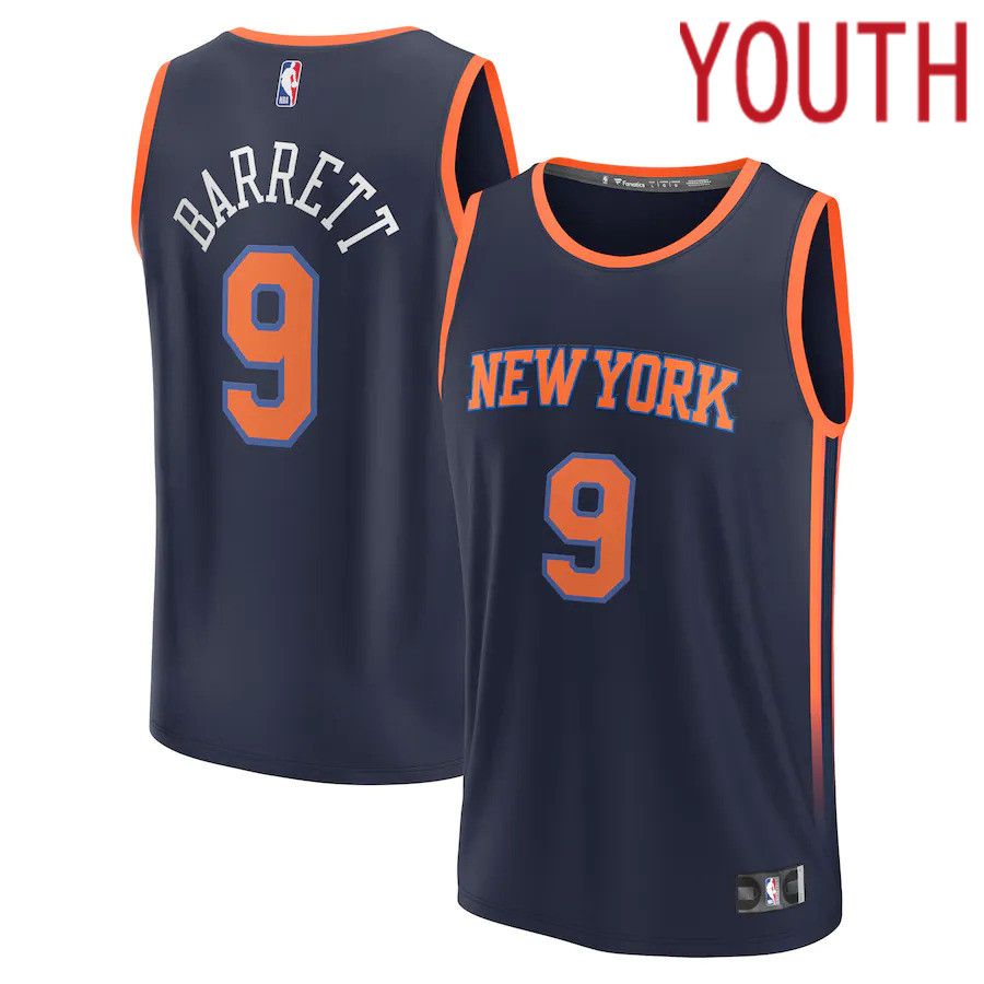 Youth New York Knicks #9 RJ Barrett Fanatics Branded Navy Statement Edition 2022-23 Fast Break Player NBA Jersey