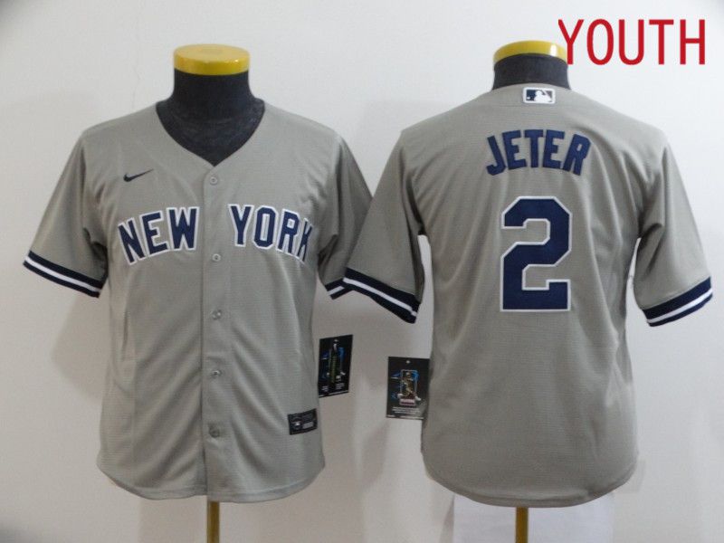 Youth New York Yankees #2 Jeter Grey Nike Game MLB Jerseys