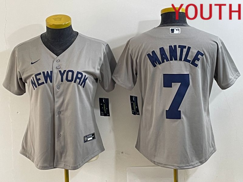 Youth New York Yankees #7 Mantle Grey Nike Game 2024 MLB Jersey style 7