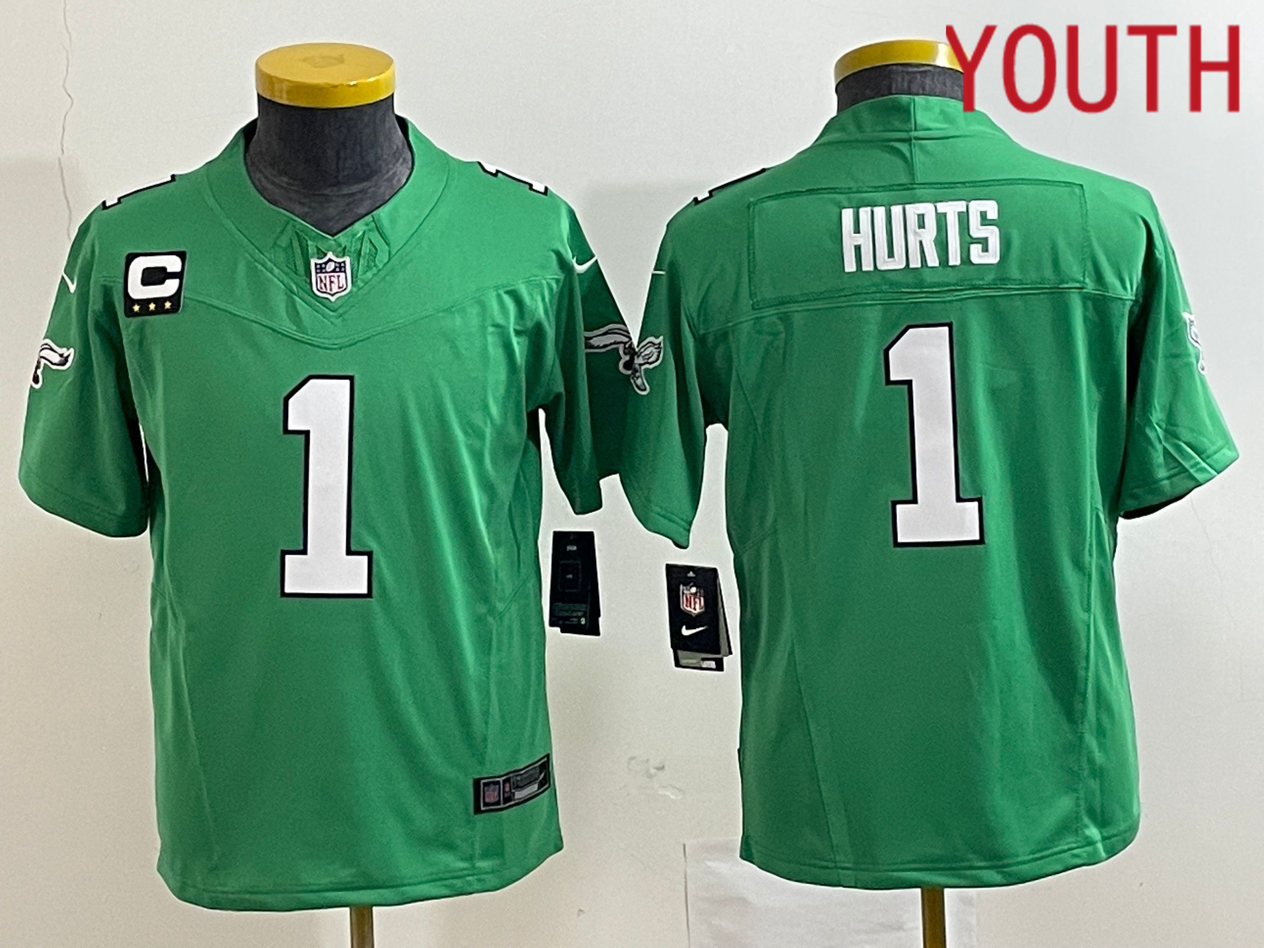 Youth Philadelphia Eagles #1 Hurts Green Nike Throwback Vapor Limited NFL Jerseys
