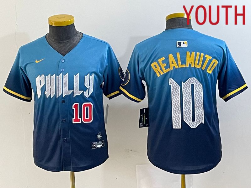 Youth Philadelphia Phillies #10 Realmuto Blue City Edition Nike 2024 MLB Jersey style 3