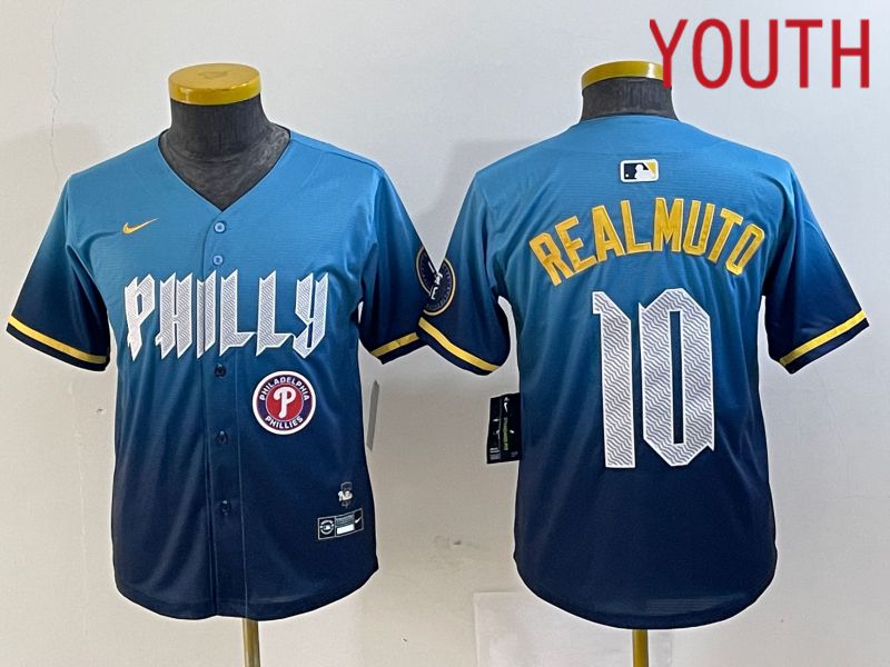 Youth Philadelphia Phillies #10 Realmuto Blue City Edition Nike 2024 MLB Jersey style 5