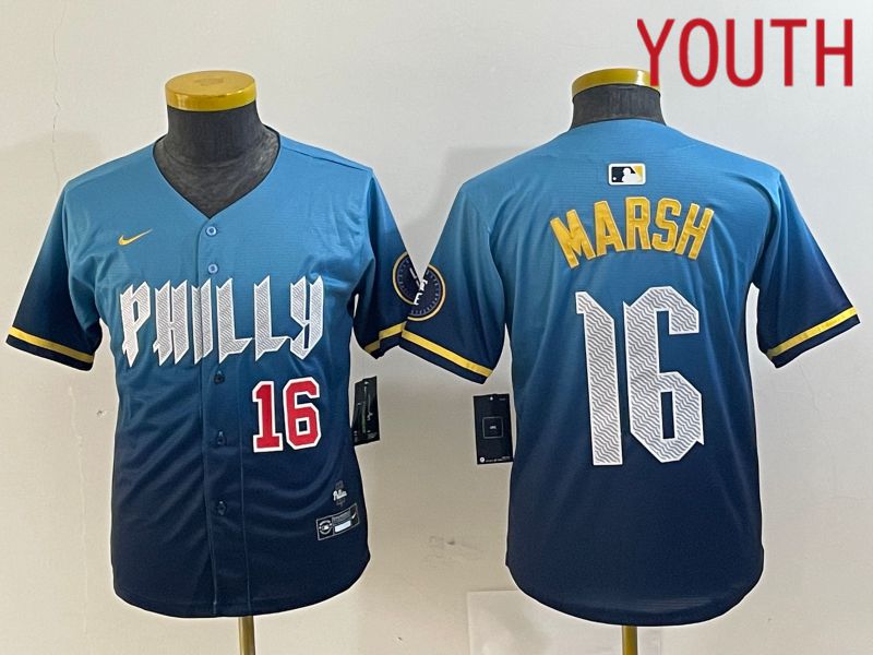 Youth Philadelphia Phillies #16 Marsh Blue City Edition Nike 2024 MLB Jersey style 3
