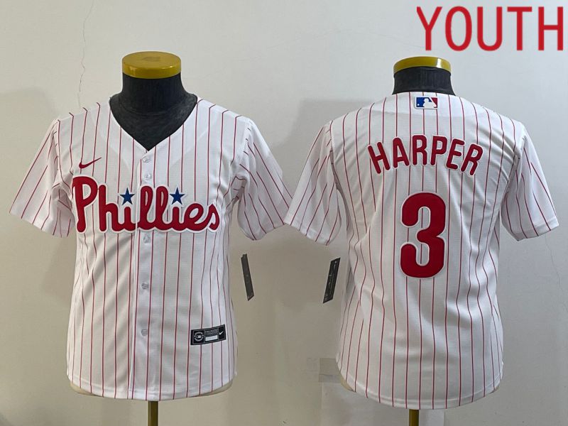 Youth Philadelphia Phillies #3 Harper White Stripe Game Nike 2022 MLB Jersey