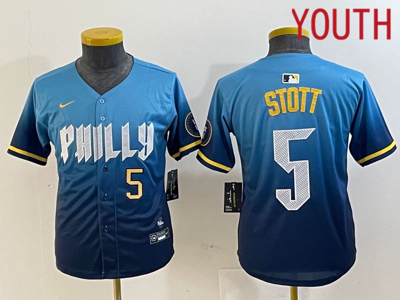 Youth Philadelphia Phillies #5 Stott Blue City Edition Nike 2024 MLB Jersey style 2