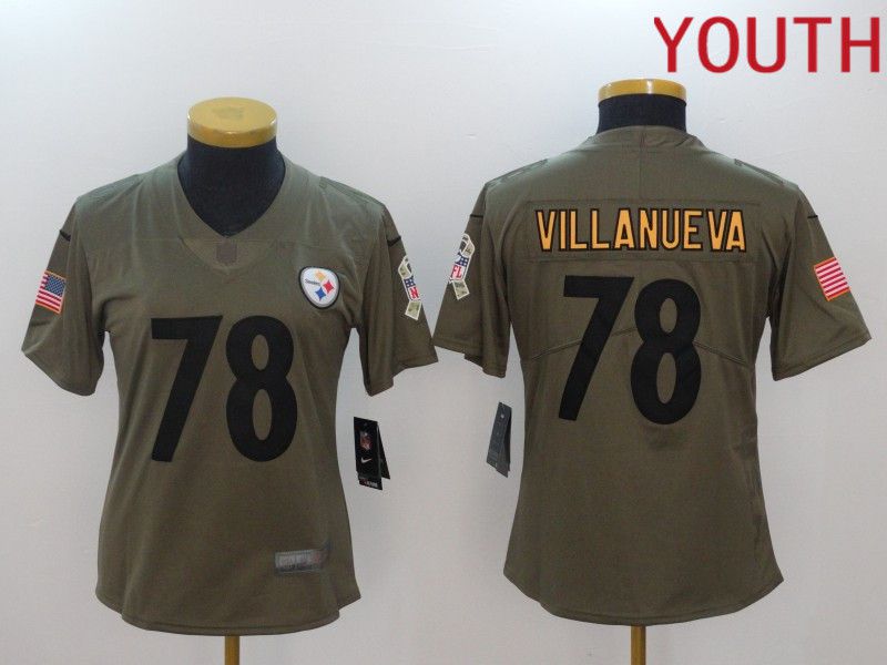 Youth Pittsburgh Steelers #78 Villanueva black Nike Olive Salute To Service Limited NFL Jersey
