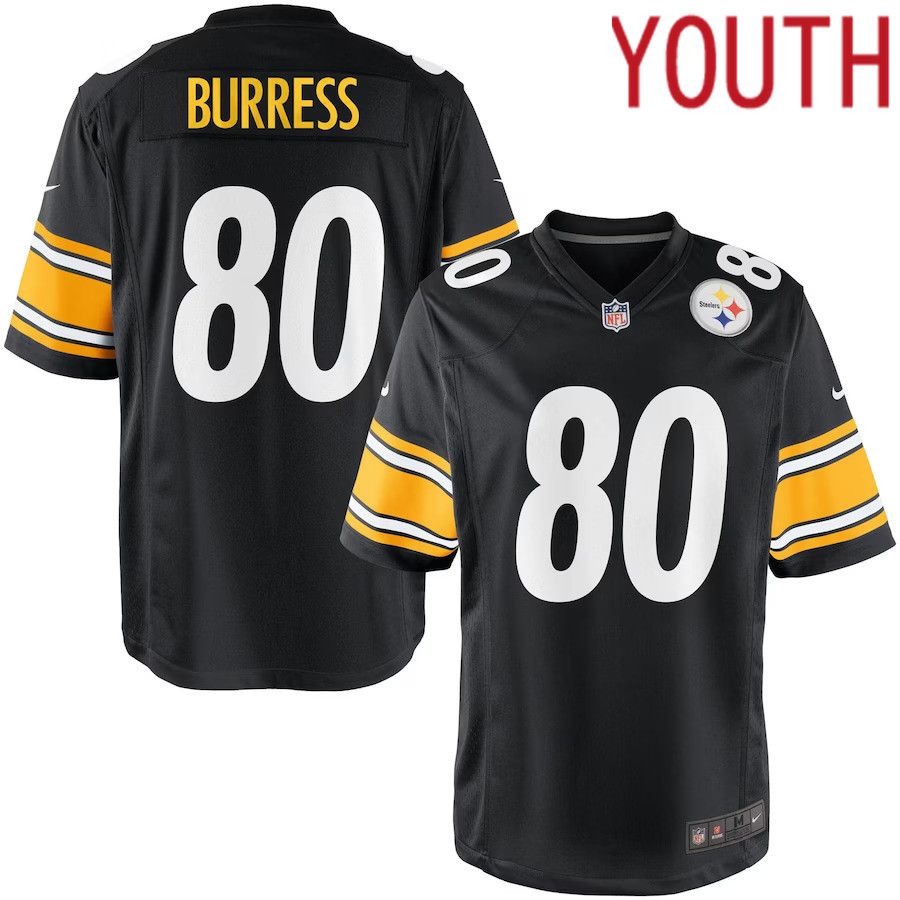 Youth Pittsburgh Steelers #80 Plaxico Burress Black Nike Team Color Game NFL Jersey