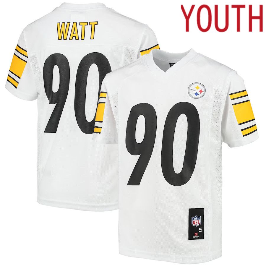 Youth Pittsburgh Steelers #90 T.J. Watt White Replica Player NFL Jersey