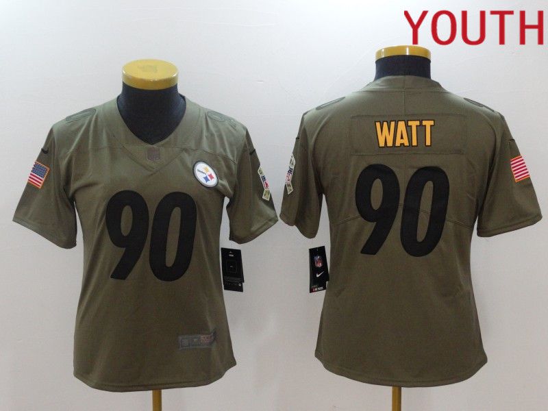 Youth Pittsburgh Steelers #90 Watt black Nike Olive Salute To Service Limited NFL Jersey
