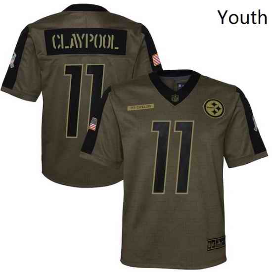 Youth Pittsburgh Steelers Chase Claypool Nike Olive 2021 Salute To Service Game Jersey