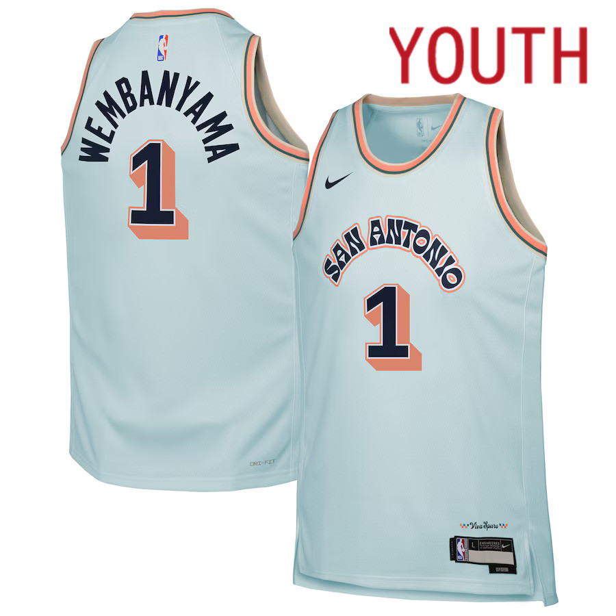 Youth San Antonio Spurs #1 Victor Wembanyama Nike Light Blue City Edition 2024-25 Swingman Player NBA Jersey