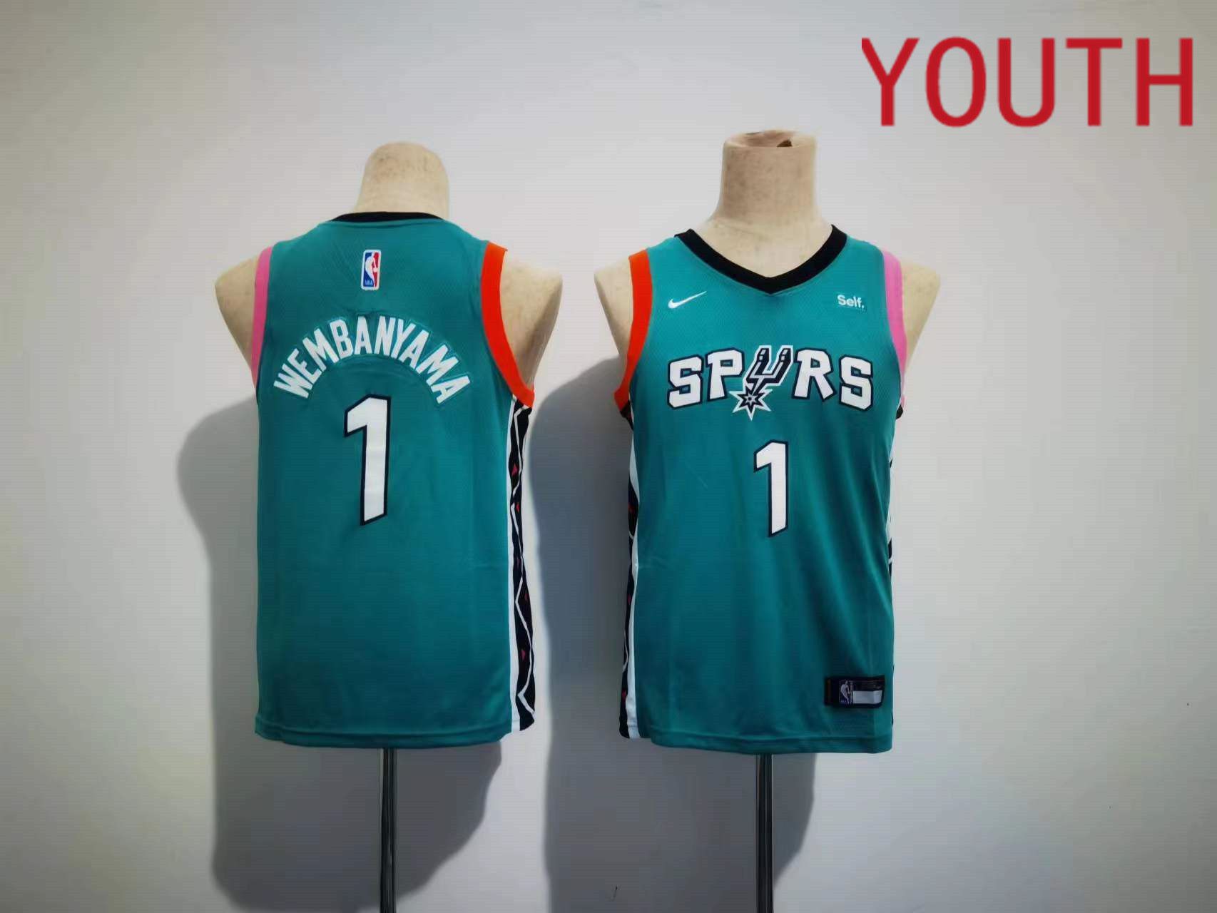 Youth San Antonio Spurs #1 Wembanyama Nike Green City Edition Swingman NBA Jersey