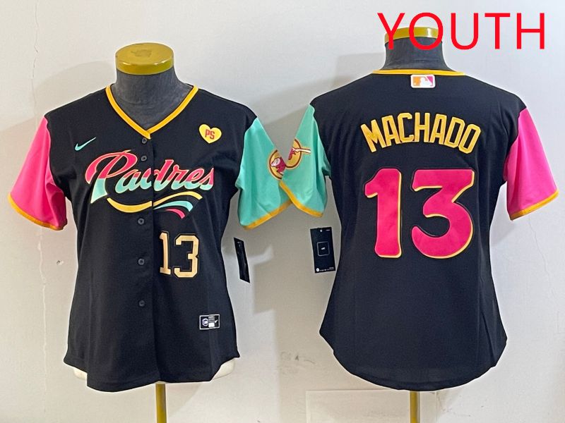 Youth San Diego Padres #13 Machado Black City Edition 2025 Nike MLB Jersey style 12