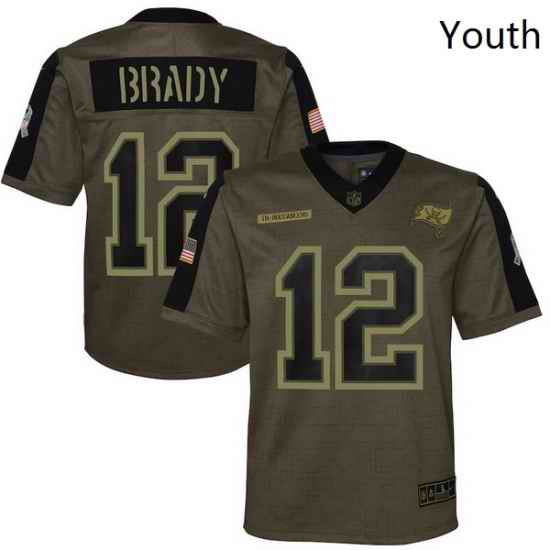 Youth Tampa Bay Buccaneers Tom Brady Nike Olive 2021 Salute To Service Game Jersey
